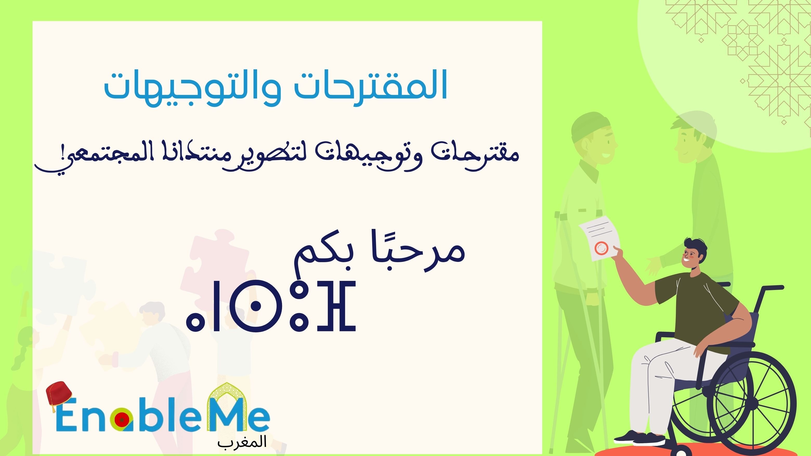 يسعدنا الترحيب بكم/ن في هذا ركن المقترحات والتوجيهات الذي تم إنشاؤه خصيصًا لاستقبال ومناقشة جميع المقترحات والأفكار التي تهم تطوير وتحسين خدماتنا. نؤمن بأن المشاركة المجتمعية الفعّالة هي مفتاح نجاح منتدانا، ولذا فإن آرائكم واقتراحاتكم تعني لنا الكثير.